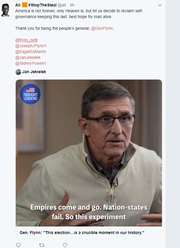 Now think about Mike Flynn, Powell, Ali Alexander, and all the other Flinn siblings who led the Stop The Steal op believed in this, used it to generate power and actively propagated this non-sense.