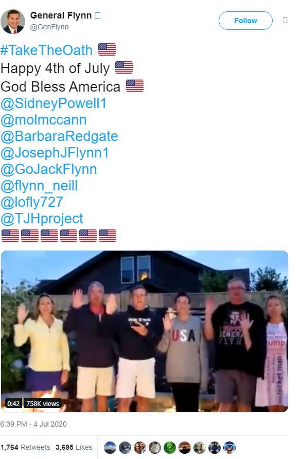 Moving back in time. On the 4th of July 2020. Mike Flynn and his family uploaded a video of them taking the Qanon oath.