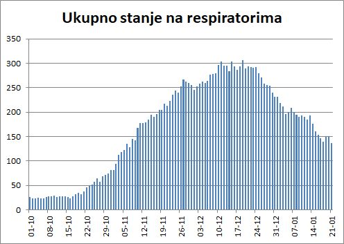 4/ ... Naravno, to je jako negativni scenarij, obratite pažnju i na ostale. Druge sjajne nove paramtre epidemije možete vidjeti u nastavku, počevši od stanja na respiratorima - najmanje u 2,5 mjeseca:
