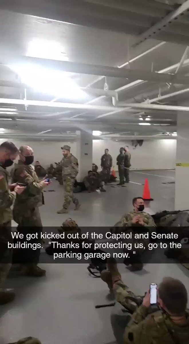 Here’s a video from the parking garage where 5,000 members of the National Guard who were guarding the Capitol are being forced to stay.