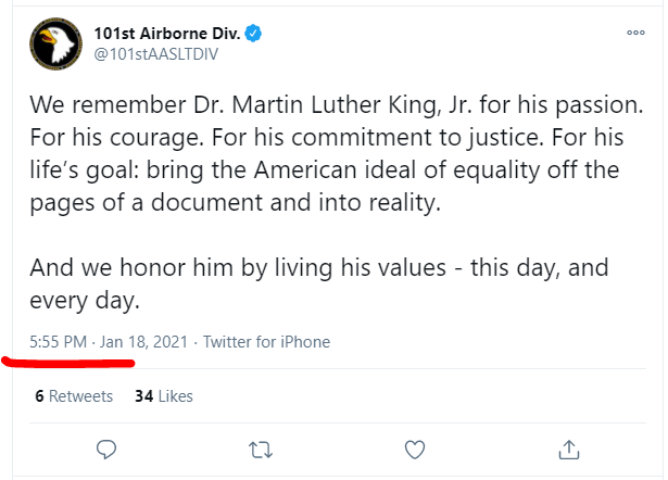 I do times inbetween tweets. Lets look to the 101st. So 17:55 today, in comparison, AA service members. Yesterday at 19:05. The difference looks as such. 22hours and 50minute, then minutes variation and seconds variation. 2250, 1370, 822.