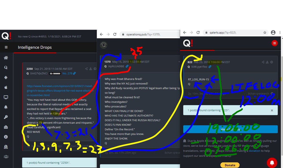 So the red, noticed the 1,3,9 in the timestamp, leaving a 25 in the middle. Second time I reffed LifeLog (Blue) today, 12|21|51|51. Yellow is both the highlights from the first drop added to 23.