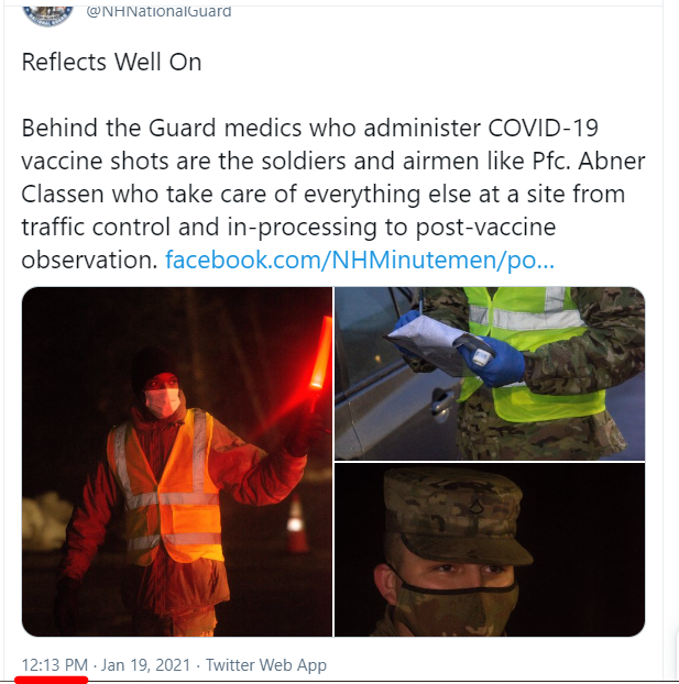 I do time inbetween tweets, looking at the NH National Guard, as I am close, lots of heli's. These two tweets. So 18:34 today, this one also from today at 12:13pm. Difference looks like this. (next slide)