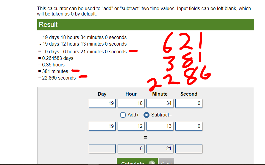 Used these three times, seems contant, less variables then the ones with "."s. Face value looks like the first snip below. I wanted to try something else likewise. So I took our base numbers the largest number is seconds, then subtracted and added them, then subtracted...