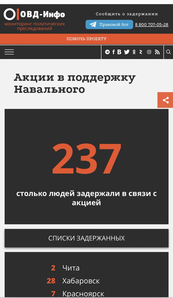 237 arrests already reported in more than 30 Russian cities - and the Moscow and St Petersburg protests haven’t even begun