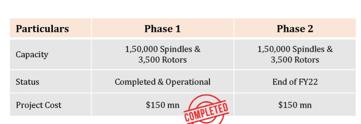 - Strategy is focused on exiting low margin cotton yarn business and capacity expansion in high margin compact cotton yarn.