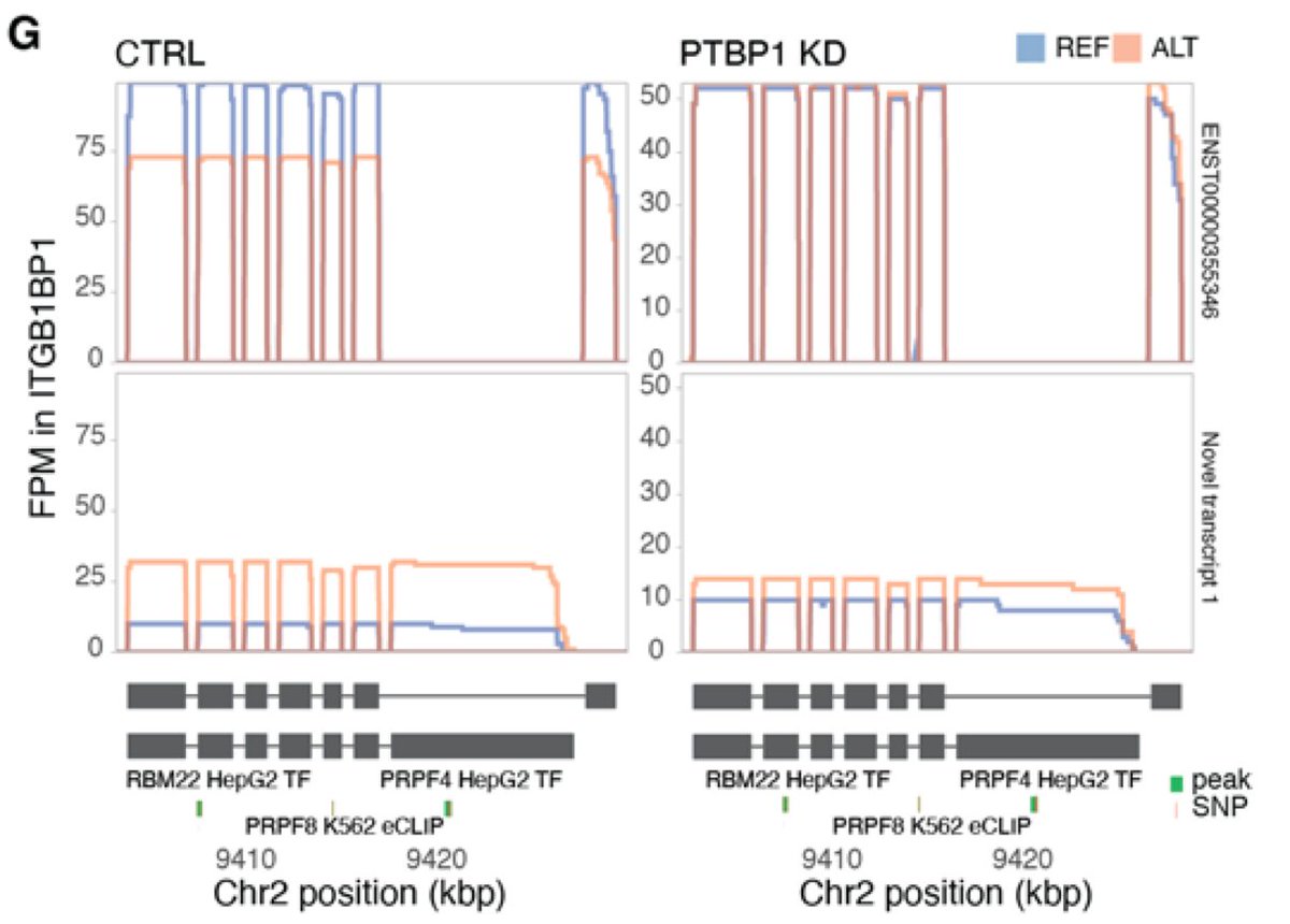 We see that eQTLs actually affect not just expression levels but also 5' structure. By knocking down an RNA-binding protein PTBP1, we show how change in cellular splicing machinery manifests in changes splicing regulation and the molecular function of genetic variants. 6/8