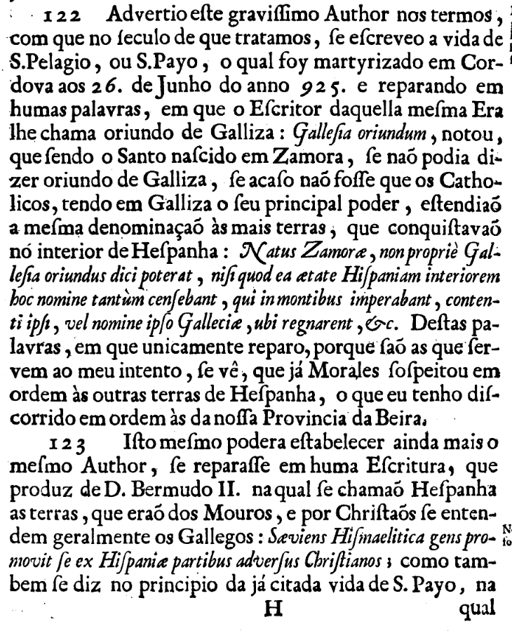 Dísenos que Beira incluíase sen distinción debaixo do UNIVERSAL NOME GALLIZA. Nin máis nin menos. Tras exemplicar a afirmación, na que usa un texto que coñecedes de Fernando I establecendo os límites gallicienses en Lorvao, fálanos de san Paio, morto no 925, natural de Zamora.