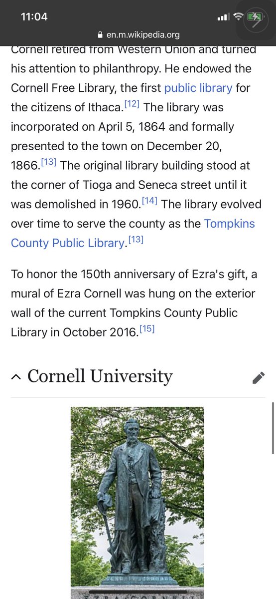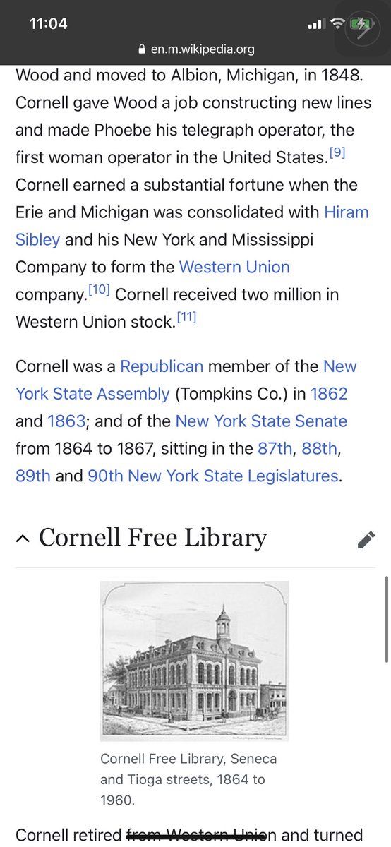 Ezra Cornell (/kɔːrˈnɛl/; January 11, 1807 – December 9, 1874) was an American businessman, politician, and philanthropist. He was the founder of Western Union, founder of Ithaca's first library, and a co-founder of Cornell University. He also served as President of the New York