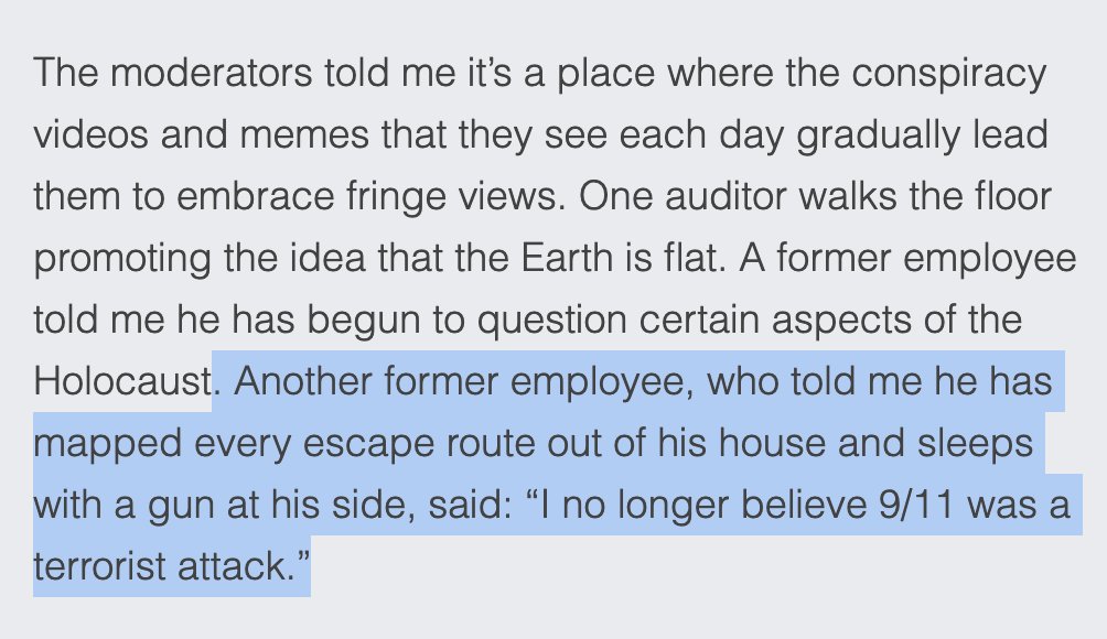 Not to mention the emotional distress that comes with being a content moderator. This Facebook mod was getting paid, but it still fucked him up so much he started to sleep with a gun by his side. And if you do the same for Twitter, you won't even get paid! theverge.com/2019/2/25/1822…