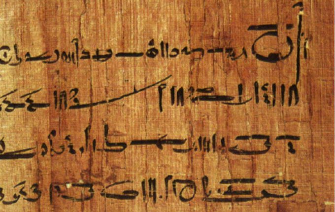 Ancient Egyptian’s two most common pigments seen on papyri are black and red. The black ink was mostly used for writing hieroglyphs or hieratic text, this ink was made by burning wood or oil, and then pulverizing the material before mixing it with water.