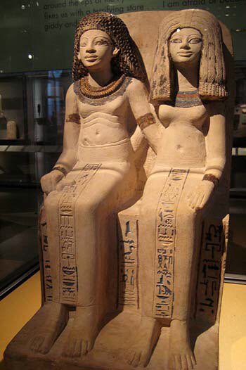 Ancient Egyptians had no issues showing affection and car for each other, as was depicted in wall paintings, stelae, and statues like the one below, a couple from the New Kingdom.