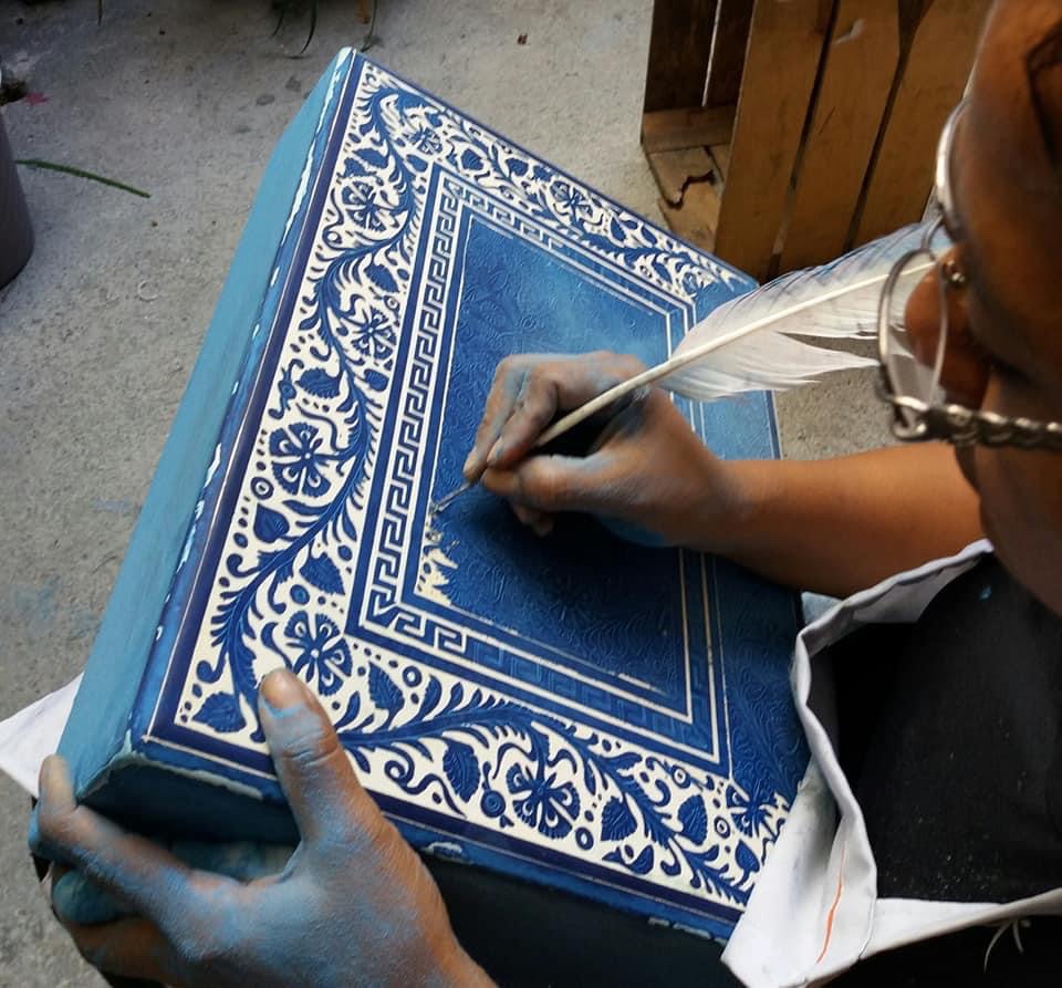 Luis Santos de San Pablito Puebla es uno de los grandes maestros del papel amate 💖 Hacen libretas , separadores , lámparas , portarretratos ,obra etc.