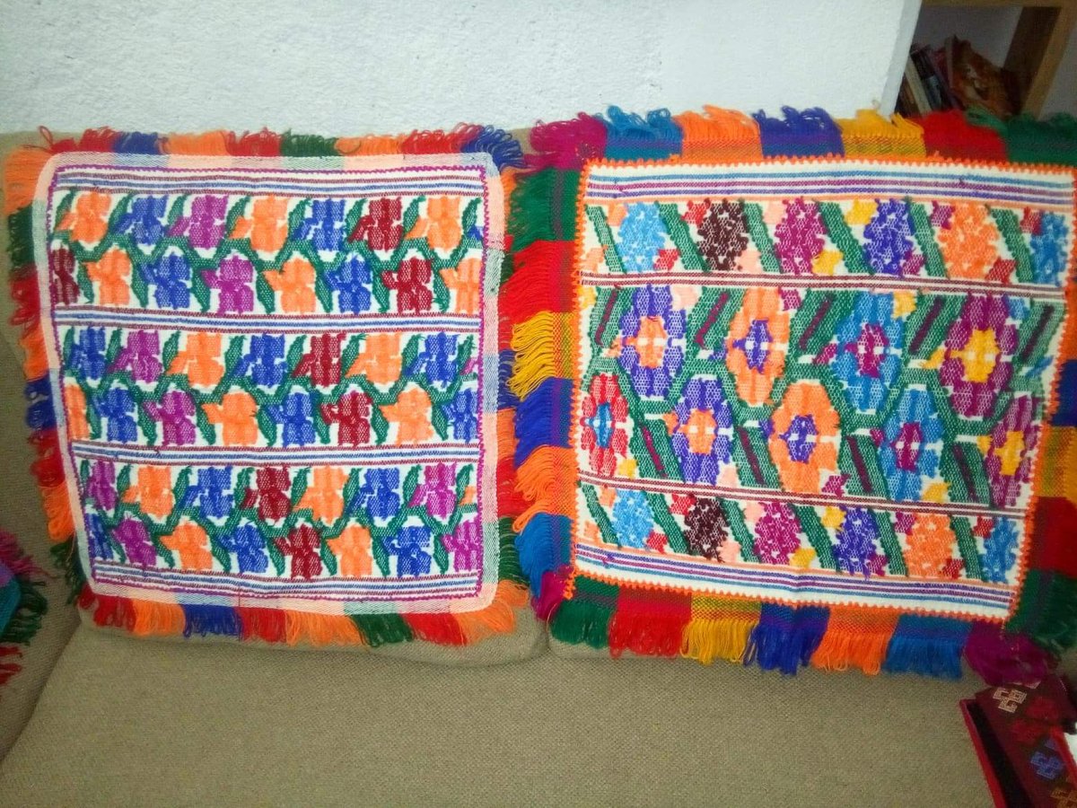 Margarita Hernandez Artesana de Zinacantan , Chiapas junto con su familia elabora manteles , caminos de mesa,cojines etc.