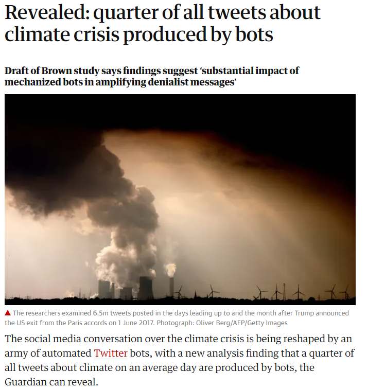 🧵Let's talk about the new #bot study by @BrownUniversity researchers that makes the rounds in media with scaremongering claims. @sciam / @guardian have uncritically reproduced statements from the authors even though we should be extremely skeptical. Let me explain why: 1/7