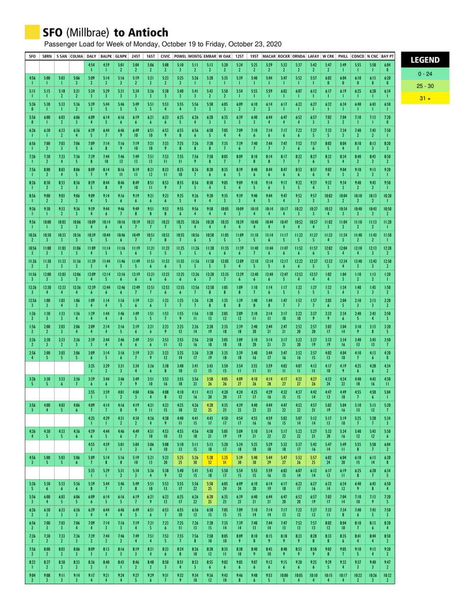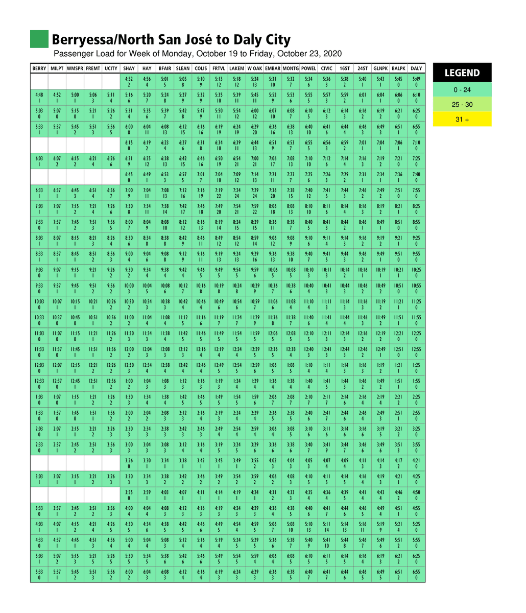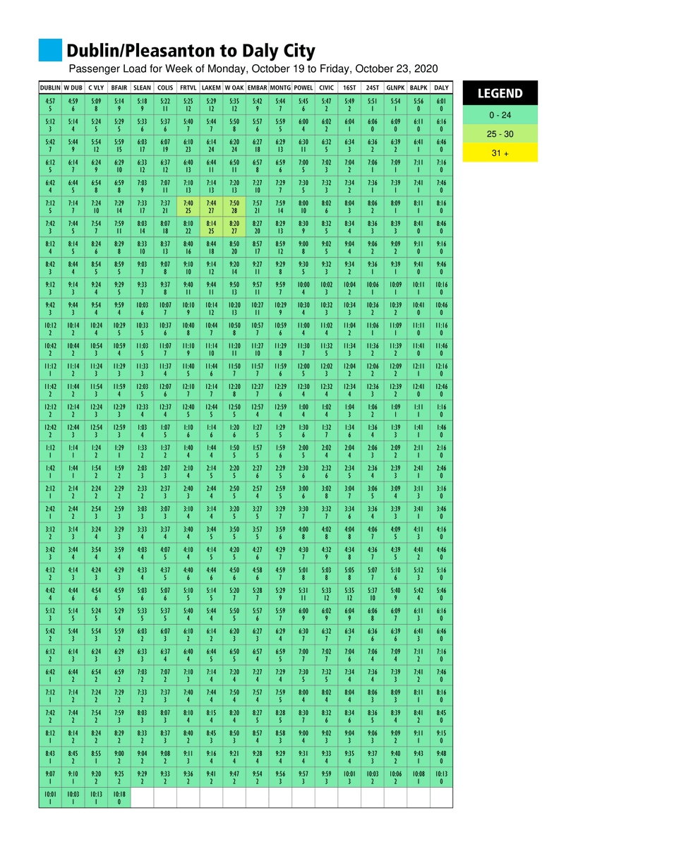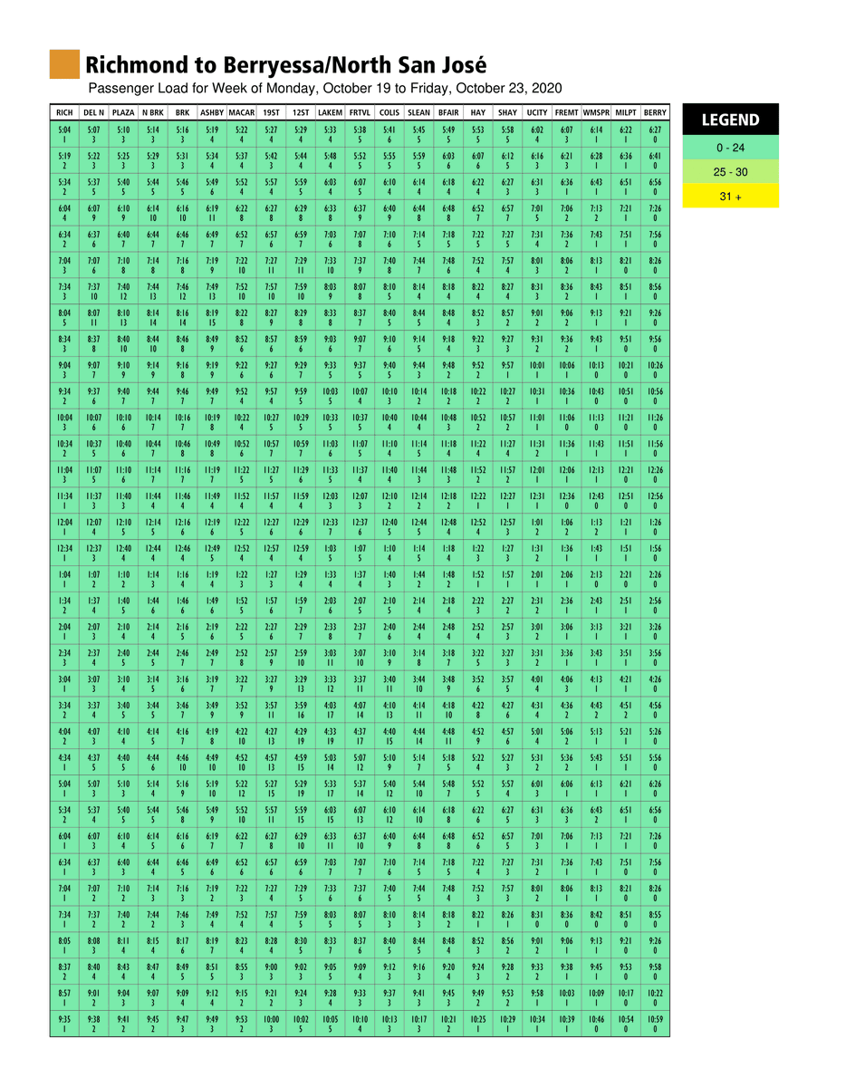 Using recent ridership data, the charts are posted on bart.gov/crowding every week.