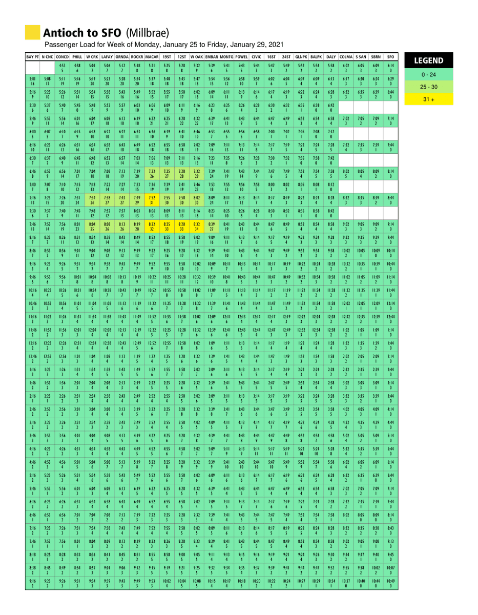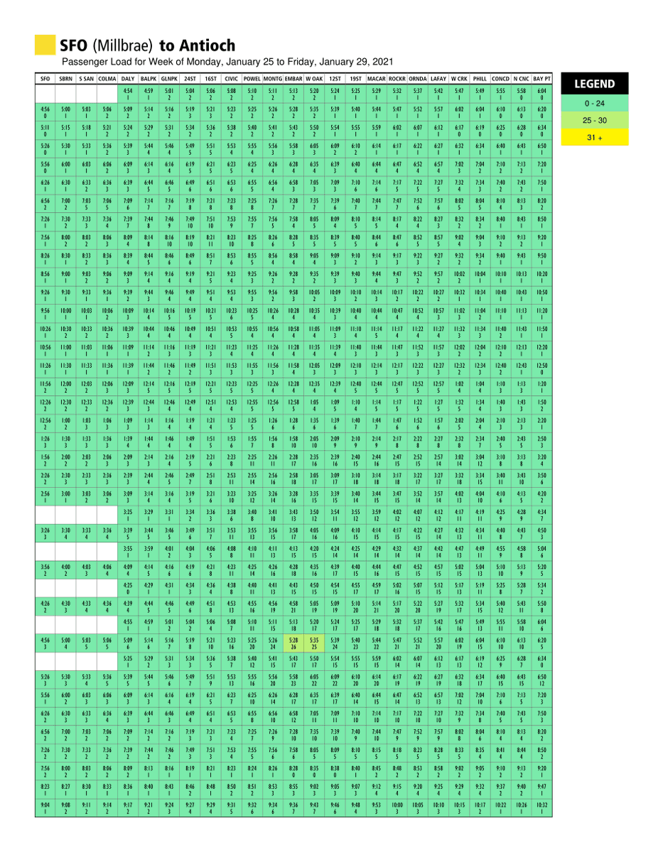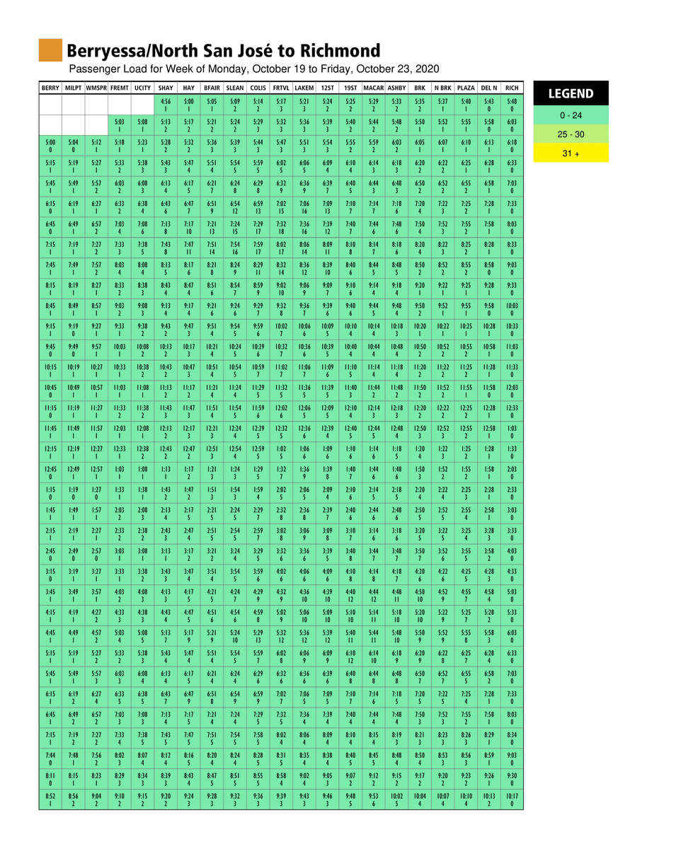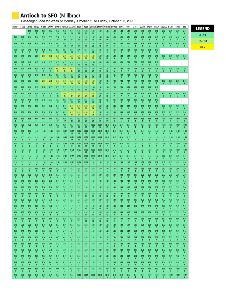 Using recent ridership data, the charts are posted on bart.gov/crowding every week.