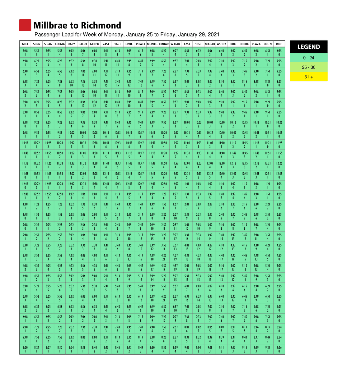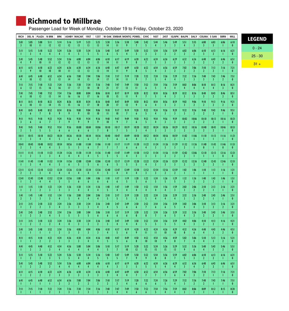 How to use it: Look up your line, station and then departure time. The # in the box is the expected average # of riders on each car at departure of station.
