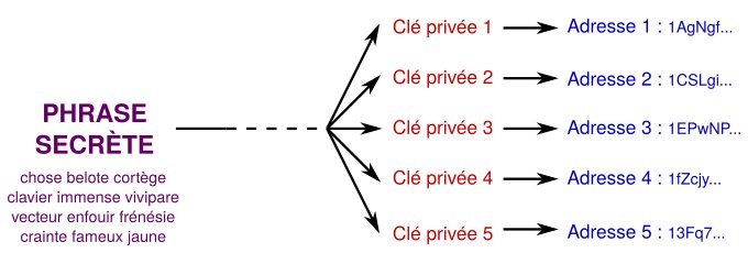 Aujourd'hui, des techniques offrent la possibilité de la décomposer à travers une suite de 12 à 24 mots. Si on renseigne ces mots dans le bon ordre, alors on déverrouille le portefeuille