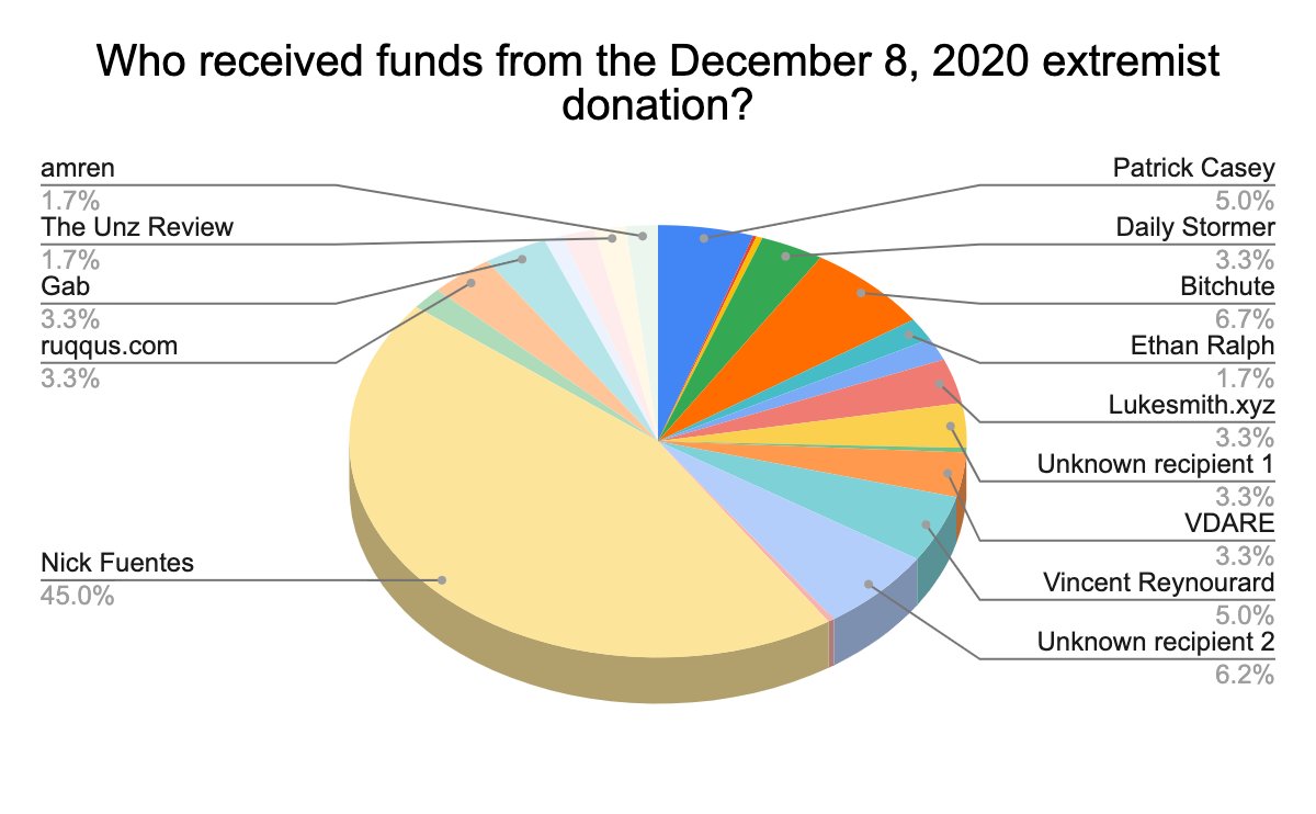 @NickJFuente a reçu 45% du total. Il a récemment été banni de YouTube pour incitation à la haine, négation de l'Holocauste et promotion d'autres théories du complot