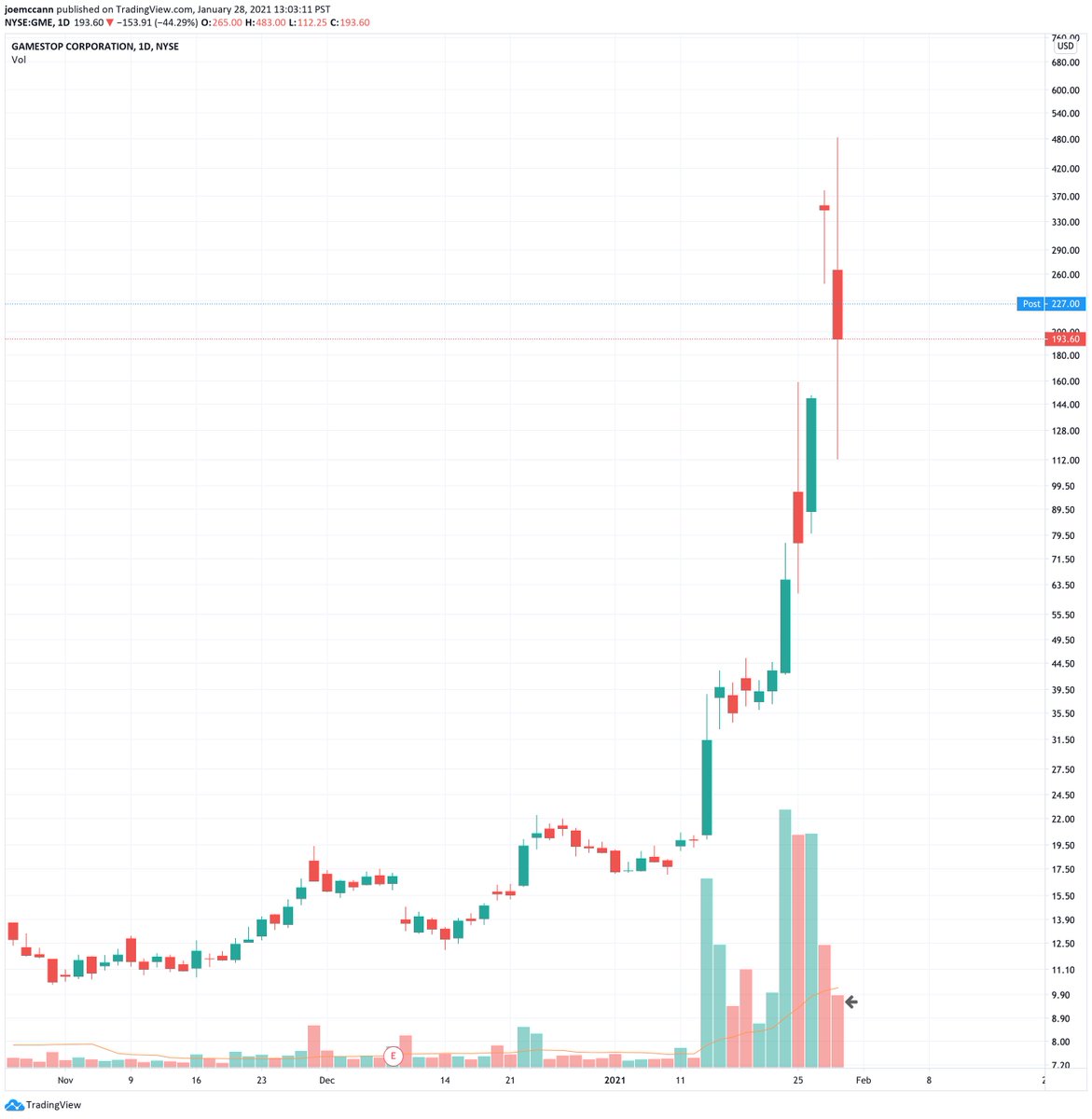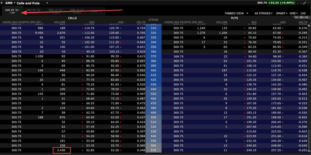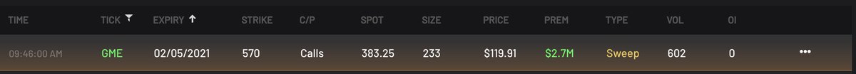 The Reddit Army is not playing. Someone paid $119.91 for the $570 call strike expiring next week (!) in $GME for a total of $2.3M on one trade.