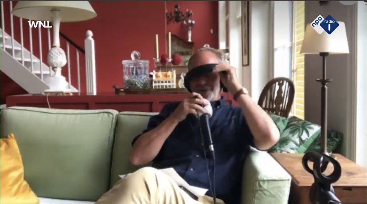 al tien minuten over de knie aan het gaan van Henk Kamp die live op Radio1 in totale paniek probeert tegelijkertijd een headset op te doen en in een microfoon te praten.