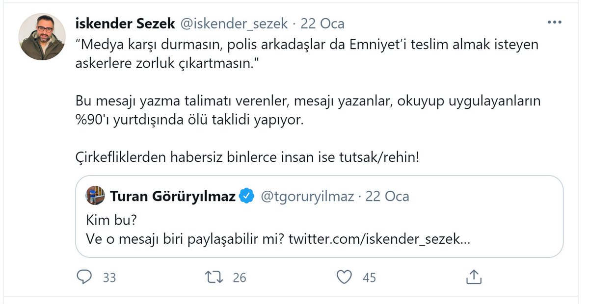 Asagidaki tvit bu acidan cemaatin pozisyonunu tarif ediyor ya da oyle gorunuyor.