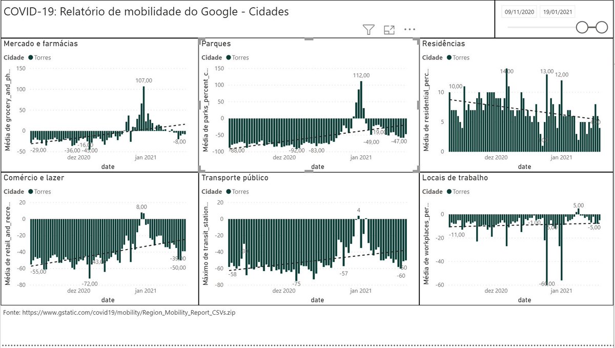 Vamos ver as mobilidades nas principais praias de veraneio aqui do RS? Puxei os dados de Torres, Tramandaí e Capão da Canoa, vejam só: //9