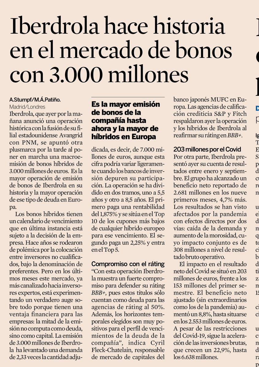 En España, Iberdrola afrontaba una emisión sin precedentes (paralela a su operación corporativa) al colocar 3.000 millones en híbridos.