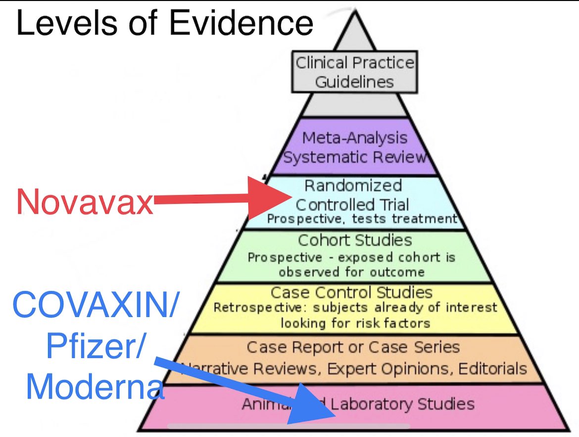 Novavax has Ph3 efficacy data from U.K. for B.1.1.7 & Ph2 efficacy data from SA for B.1.351. The number of participants & events in the Ph2 were small and the confidence intervals were wide. BUT clinical trials are at top of the evidence pyramid, lab studies are at bottom 5/