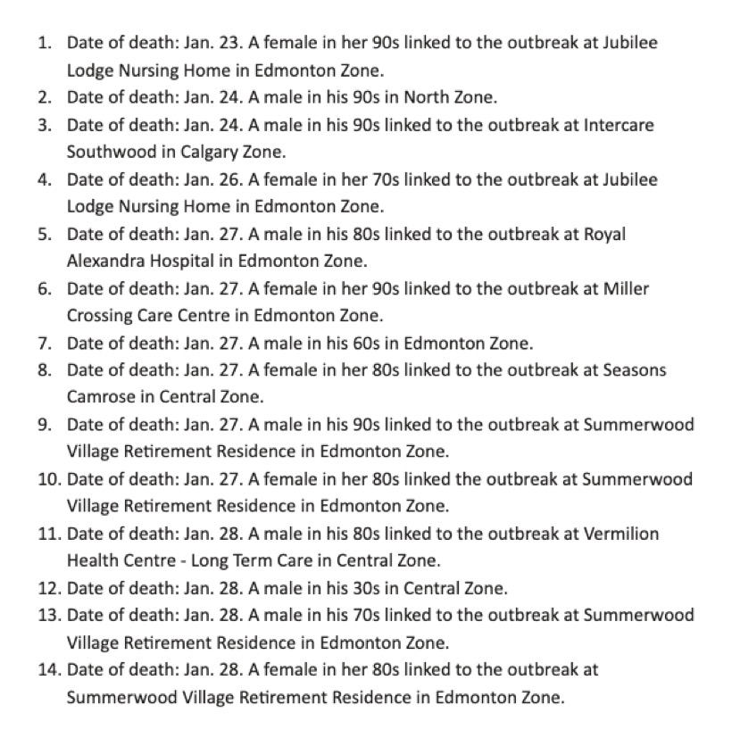 Details on the 14 new deaths announced today. Provincial death toll is now 1,620. #COVID19AB