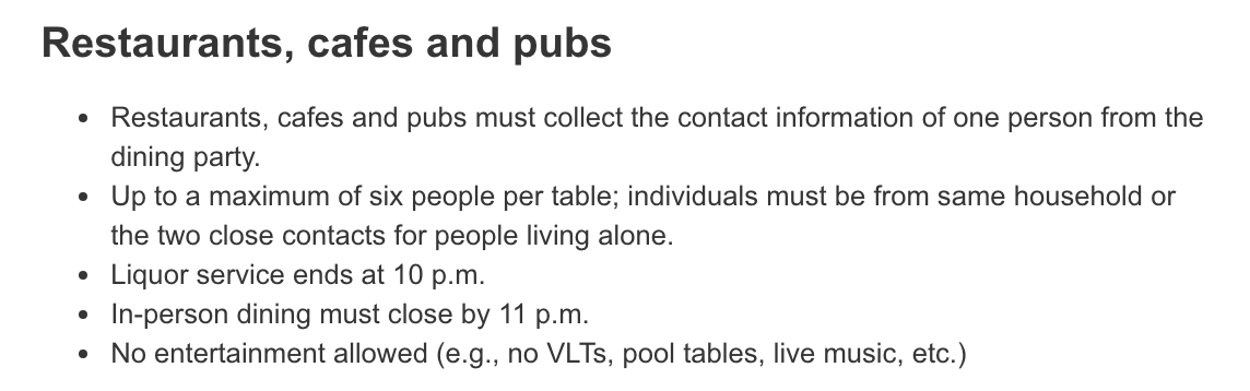 For restaurants, cafes and pubs, a maximum of six people will be allowed per table. They must be individuals from same household or the designated two close contacts for people living alone. #COVID19AB