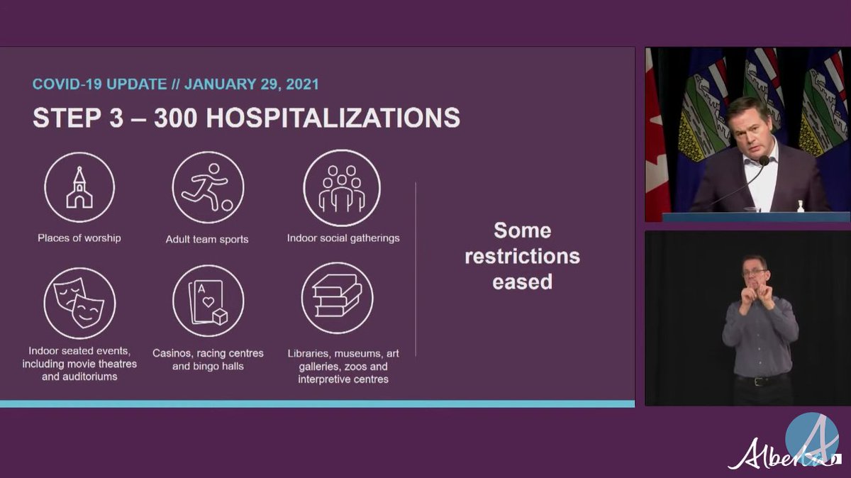 Premier Jason Kenney's Facebook page says the GoA will be "introducing a path forward for easing COVID-19 health restrictions, with clear benchmarks for hospitalizations. This will begin with step one, with some restrictions easing on Feb. 8." #COVID19AB#ableg#abpoli