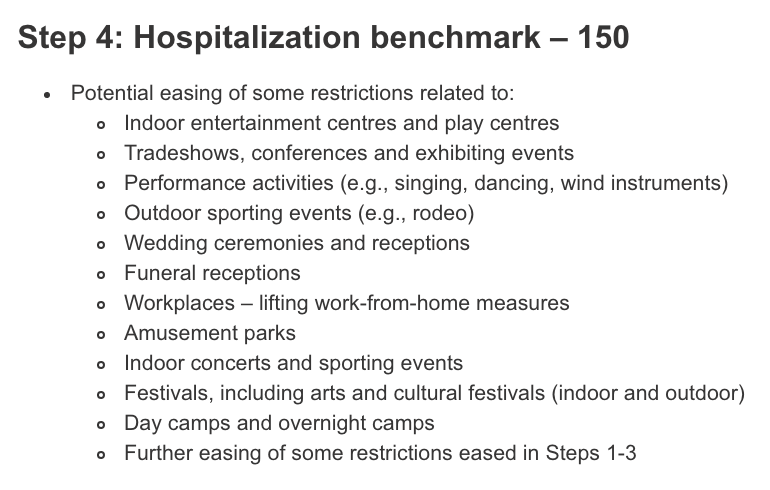 "We know that as measures are eased, there will be the risk of greater community spread," says Kenney. "That is why moving from one step to another will not be done automatically once a benchmark is reached." #COVID19AB