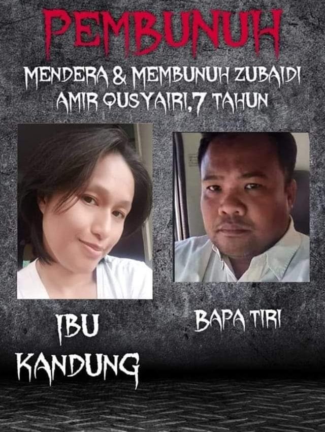 Ini dia bapa tiri dan mak kandung yang bunuh arwah Amir. Tak sampai 3 bulan dieorang jaga. Sebelum itu dijaga keluarga angkat yang sangat baik. Arwah Amir menangis masa berpisah. Sedih dengan bani melayu!