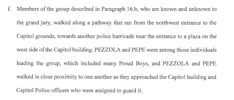 Here the govt seems to suggest that Pezzola & Pepe were part of the 100ish strong gang of PBs that mustered in DC on Jan. 6 & marched on the Capitol under the leadership of Joe Biggs. Biggs has been charged in a separate case on a complaint. Will the two cases merge?