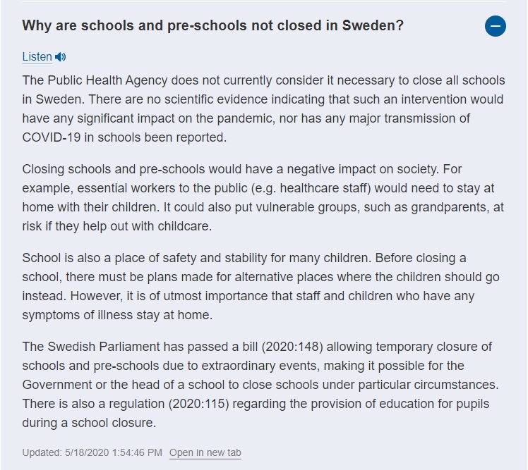 Verhelderend interview met de Zweedse staatsepidemioloog Anders Tegnell. "The risks of keeping schools open are not very great , and the benefits are very, very big"