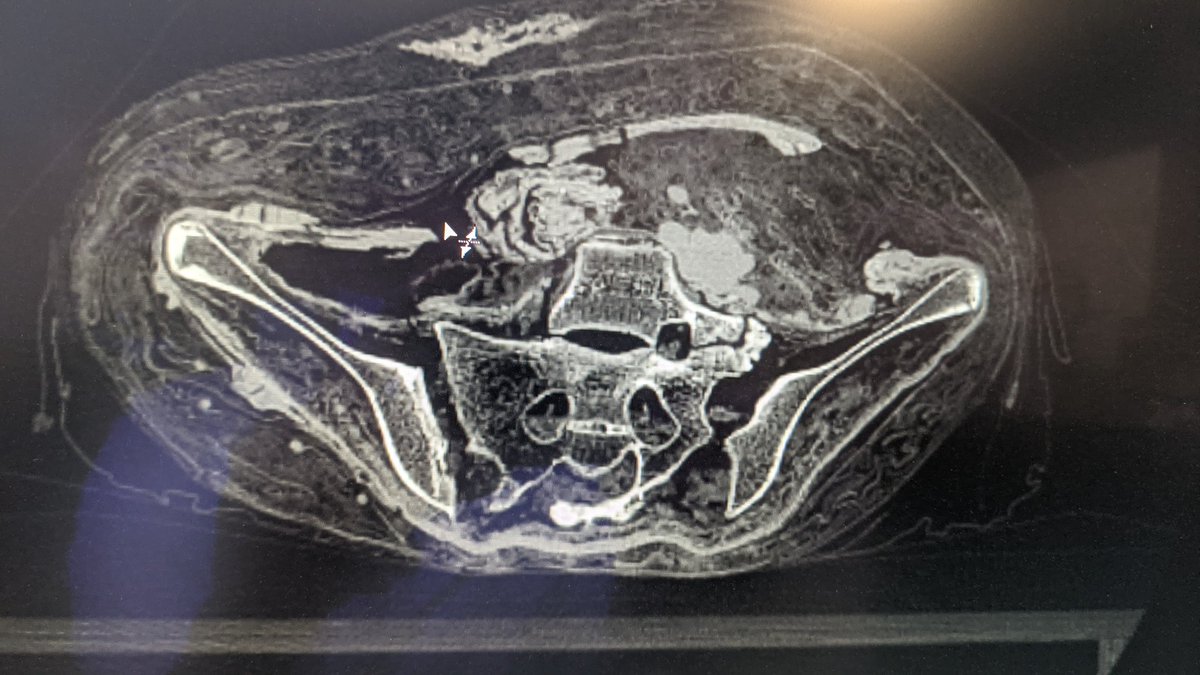 Il s'agit d'une momie égyptienne, on peut bien voir sur le scanner la probable voie trans-sphenoidale qui a été utilisée pour vider le contenu de la boîte crânienne