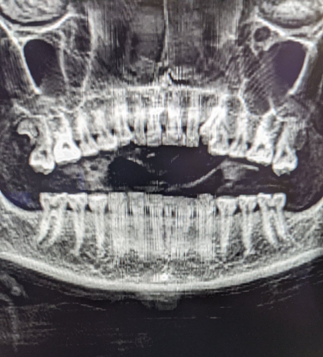 Comme c'est une question qui est revenue plusieurs fois, pour la team dentaire je vous ai fait une reconstruction curviligne épaisse qui montre en effet des dents en plutôt bon état ! 😉