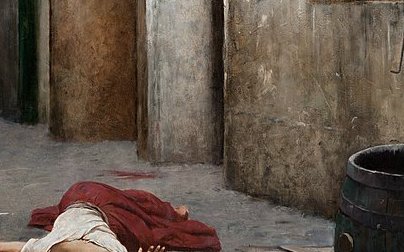 Cinayeti görenlerin verdikleri tepkilere bakarsak, onların böyle bir sahne ile ilk kez karşılaşmadıkları sonucuna varabiliriz. Endişeli ya da korkmuş gözüken çok az figür var. Aslında daha çok meraklı figürleri görüyoruz.