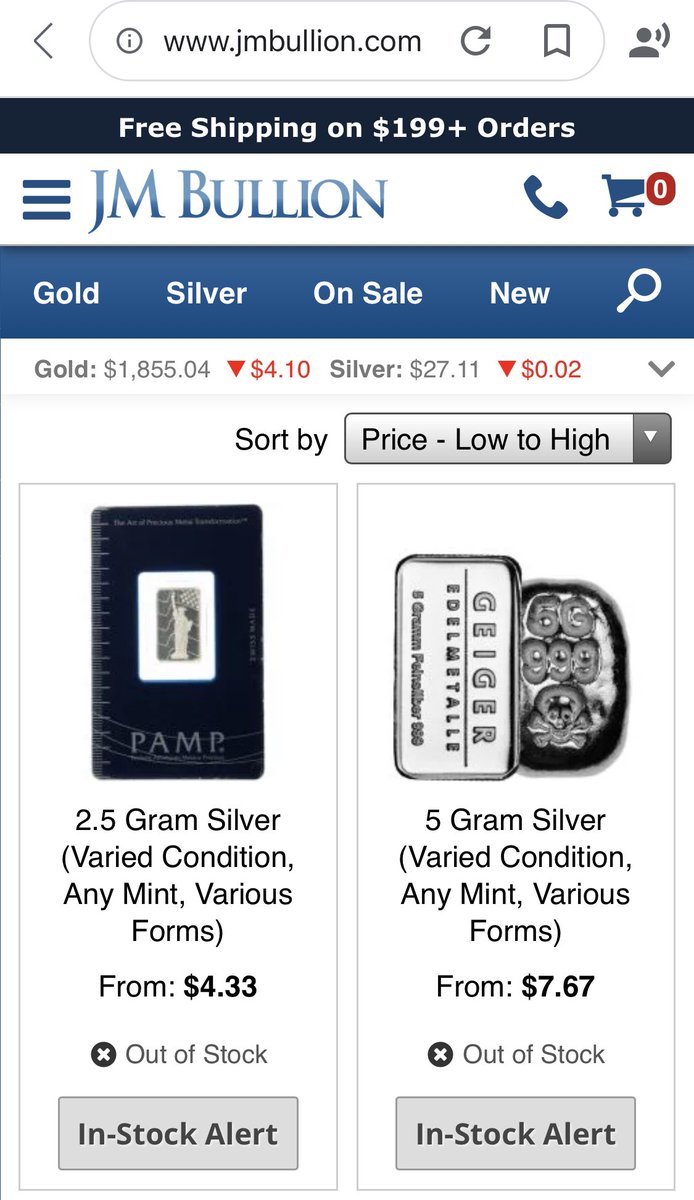 Every silver bar on JM Bullion is out of stock #silversqueeze