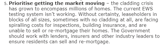 One of the key impacts of this is an attempt to make the govt face up to the fact that its rhetoric of the last few years (leaseholders shouldn't pay) doesn't match its actions (leaseholders are paying, will pay more)