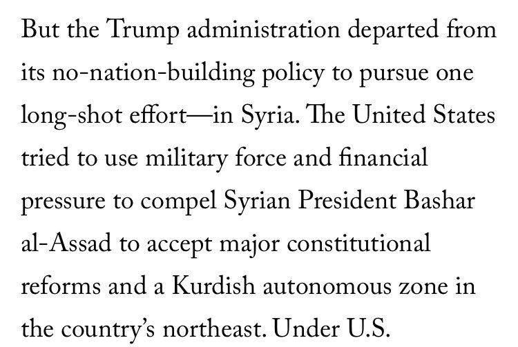1/ Questionable subtitle: the US state-building ambition never extended to SYR. As Ford himself points out, SYR has never been a US priority & there was no grand plans like in Afgha or Iraq. The Iraqi state-building failure actually refrained the US from engaging in it in SYR.
