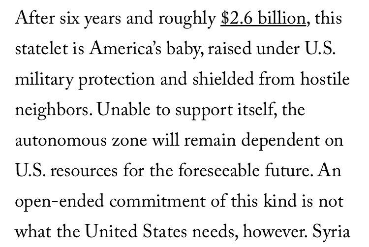 4/ i also disagree with the description of US policy in NE Syria: there was no proactive process to build a ‘statelet’, or to force Assad to accept NE autonomy. There was just a very simple military goal: defeat ISIS. Any other consideration was postponed for later.