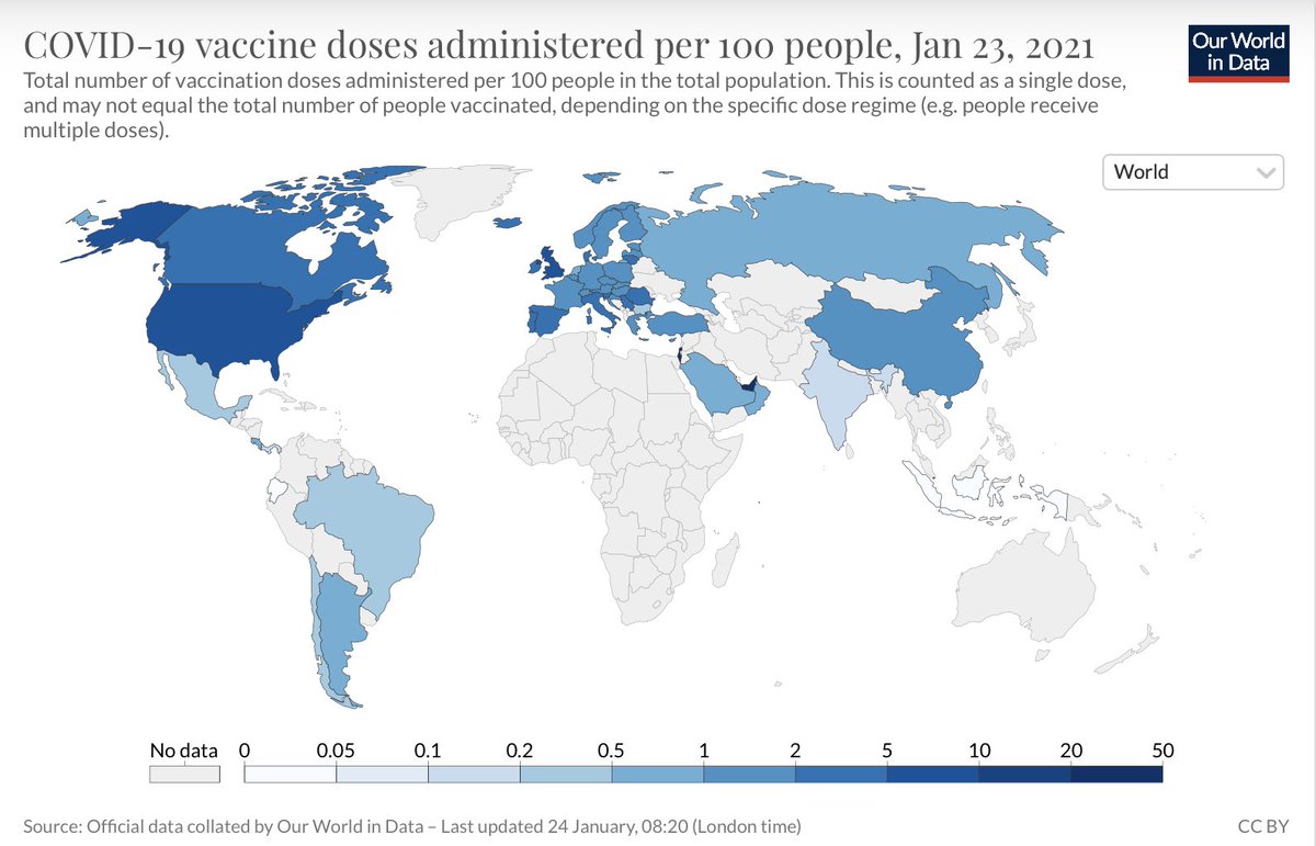 Tentem achar o Brasil dentre os 50 que mais vacinaram por habitante.
