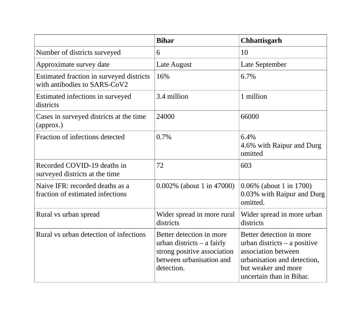 ...in Chhattisgarh (CH) a much smaller % had been infected than in Bihar (BH). But CH had picked up over 6% of its infections, while BH had picked up just 0.7%. CH had many more deaths - no surprise as BH was failing to identify its COVID infections & presumably also deaths. 4/5