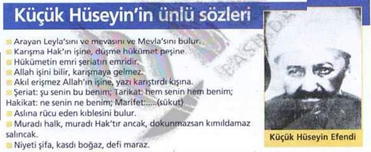 Bu arada Küçük Hüseyin Efendi’nin şeyhinin Ömer Fevzi Mardin olduğunu da hatırlatmak gerekiyor. Hatta bu iki ismi Rauf Orbay’m tanıştırdığı da…