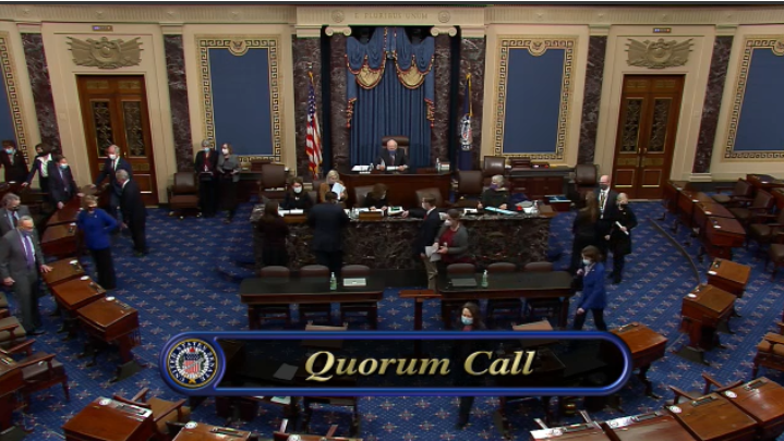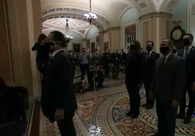 Sen. Patrick Leahy D-VT now in the chair. He will preside over the Trump impeachment trial as the President Pro Tem of the Senate. Senators now coming to the floor for the arrival of the House managers.