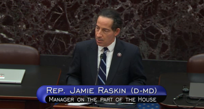 A lot more Democrats on the Senate floor than GOP Senators. Lead manager Rep. Jamie Raskin D-MD is reading the impeachment article against former President Trump.