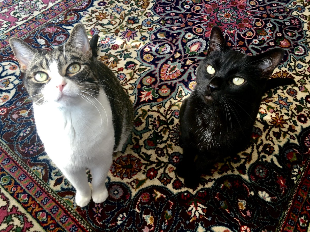 Yes, Simon is a super cat-dad. We have two small guys – Max and Ed – who Simon rescued from a barn back when they were starving kittens. Now they have gourmet snacks, soft blankies, 100 toys, & a social media fan base. Living the dream! /9